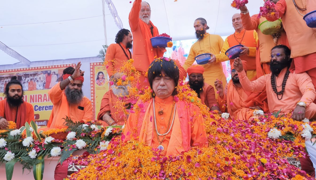 2025年12月15日、インドの聖地ハリドワールにて、スワミ・アディティヤナンダ・ギリジ猊下が、インドで現在最大の聖者団体である、ニランジャニ・アカラの中の指導者集団、マハ・マンダレシュワール(=偉大なる宇宙の大神、の意)の地位に就任されました。