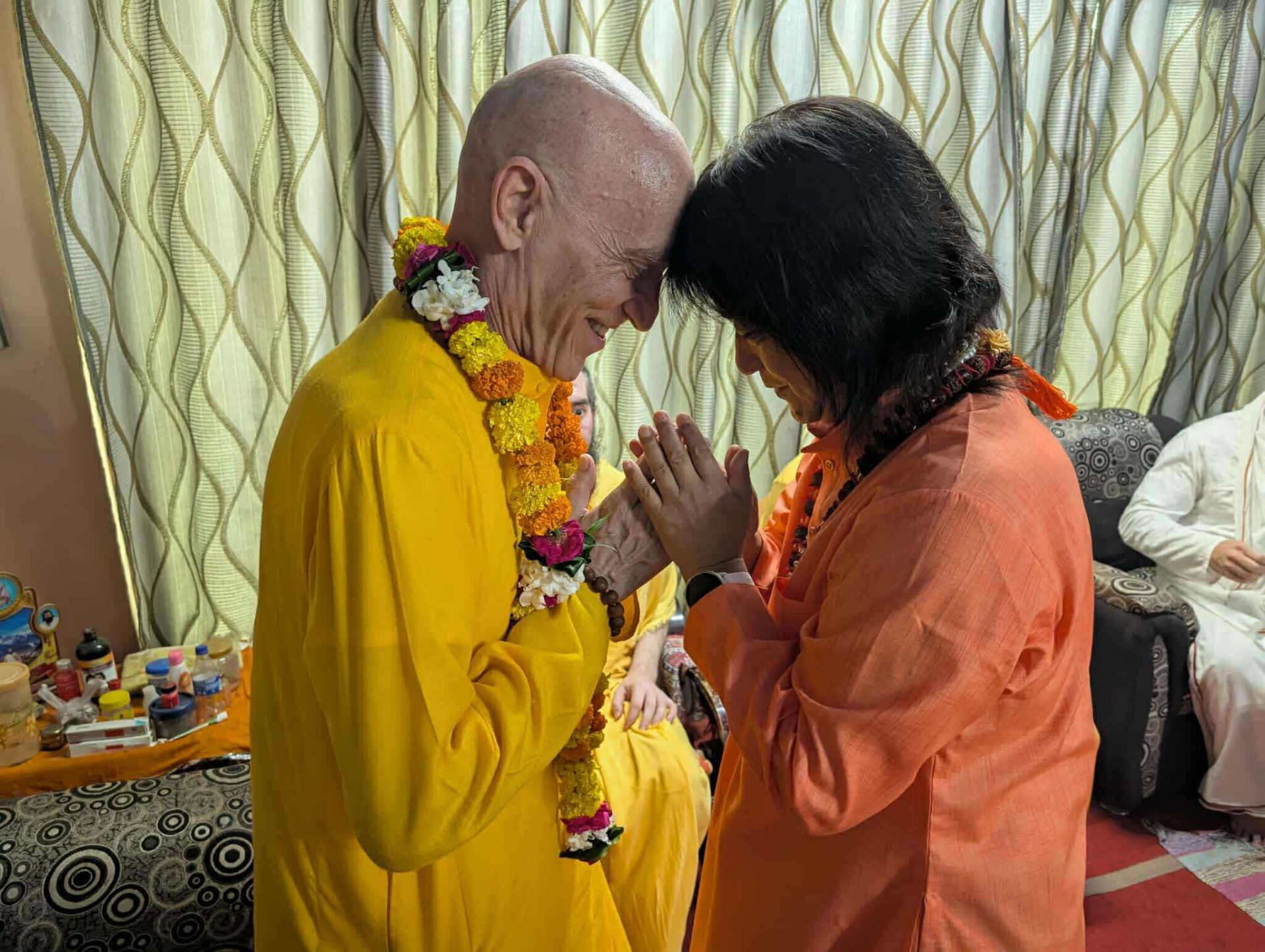 なんとこの度8月16日にサイマー様(1008 Mahamandaleshwar Her Holiness Jagadguru Sathya Sai Maa Lakshmi Devi)のお弟子様でマハ・マンダラ・イシュワールでいらっしゃる3人 ①スワミ・パラメッシュワール・ダス・マハラジ様 ② アナント・ダス・マハラジ様 ③ ジヴァン・ダス・マハラジ様 がサンジェイ・ギリ・マハラジ猊下のお部屋にてスワミジ様とお会いになりました。