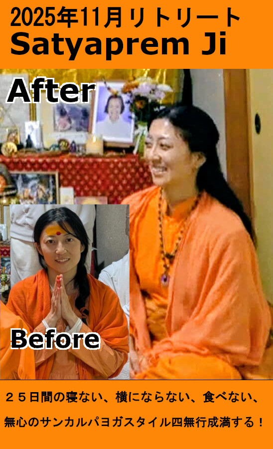 5日から25日間の寝ない、横にならない、食べない、無心のサンカルパヨガスタイル四無行で25日間達成されました。